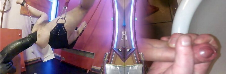 Hung Naked Man Suspended in Air with Chain-Bound Balls and Gaping Anus in BDSM Gay Gay_Twink Porn Scene